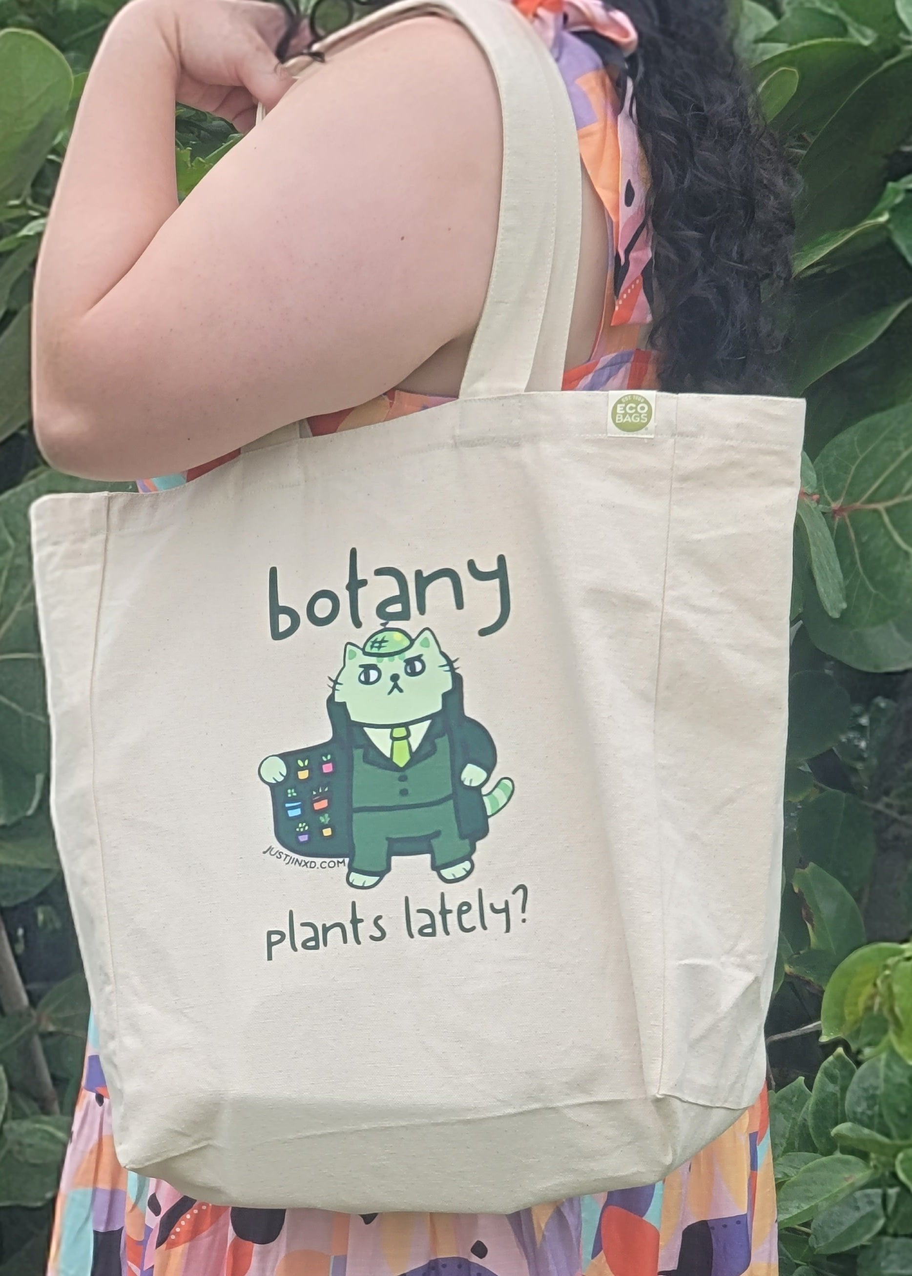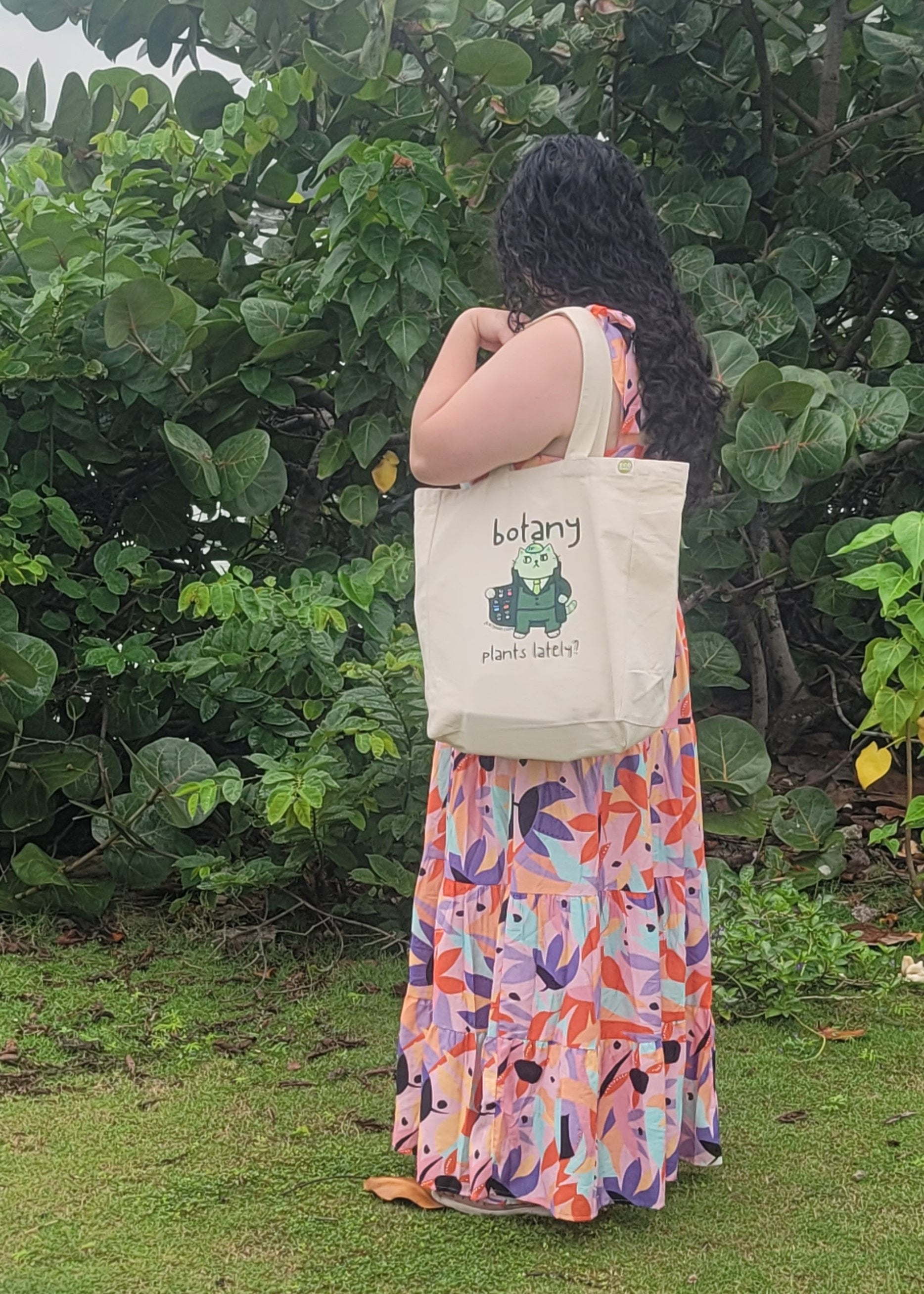 Show off your love for plants and puns with our Botany Plants Lately Tote Bag! Made from eco-friendly recycled cotton, this tote is both durable and stylish. With plenty of room and a convenient inner pocket, it's perfect for carrying your essentials—whether it's a quick grocery run, a day out, or even for your gardening tools! Measuring 13.5"W x 15.5"H with a 5.5" gusset for extra storage, and featuring a 10.5" handle drop for comfortable carrying. Plus, it's machine washable for easy care! Add a touch of plant humor to your daily routine and make a positive impact on the planet with this adorable tote.