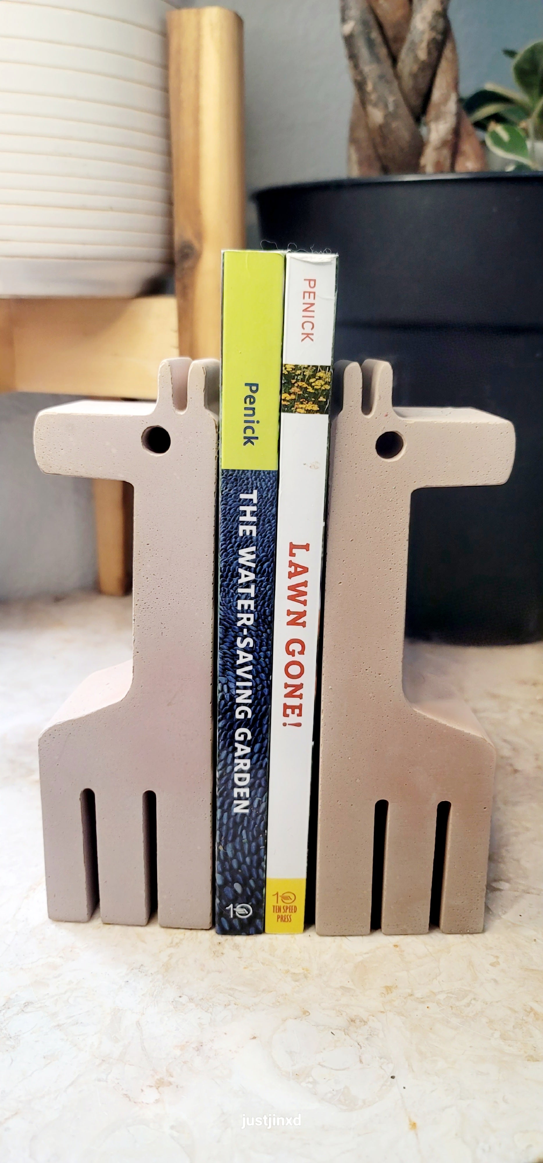 Bring a touch of the wild into your home with these elegant Giraffe Pair Bookends! Perfectly crafted to showcase the graceful form of two giraffes, these bookends are both functional and decorative, making them a stylish addition to any bookshelf, office, or living room. The detailed design captures the unique charm of these majestic animals, standing tall to hold your books in place with ease. Whether you're a wildlife enthusiast, a lover of unique home decor, or searching for the perfect gift, these giraffe bookends are sure to impress. Add a splash of safari-inspired elegance to your space while keeping your favorite novels, magazines, or journals neatly organized.