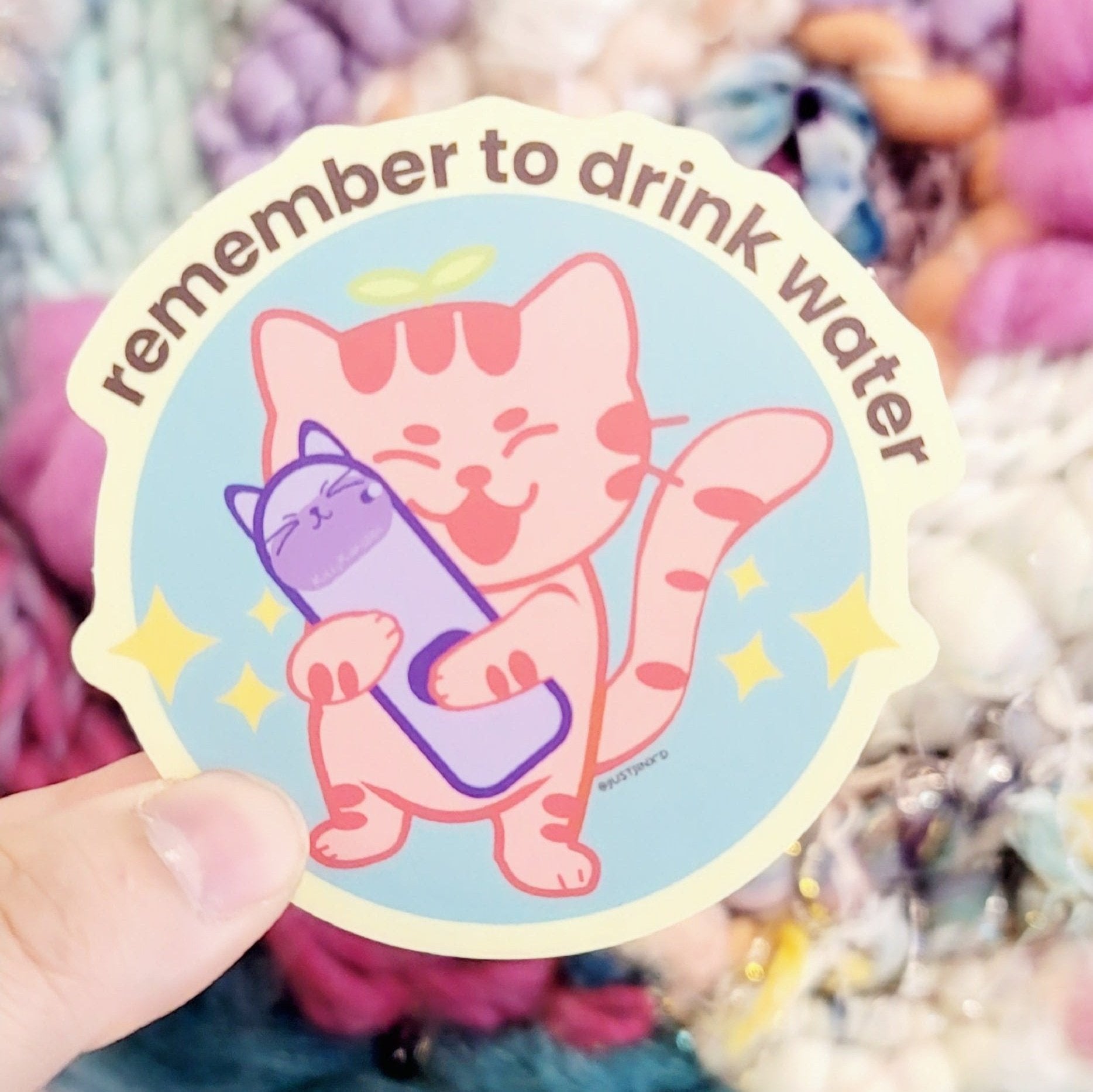Stay hydrated with a gentle reminder from Happy Jinx! Our 3x3" matte sticker features an adorable Jinx happily hugging a reusable water bottle, spreading good vibes and healthy habits. Perfect for your water bottle, laptop, or notebook, this durable, weather-resistant sticker serves as a cute, eco-friendly reminder to drink water and stay refreshed throughout the day. Stick it on and keep the positivity (and hydration) flowing!