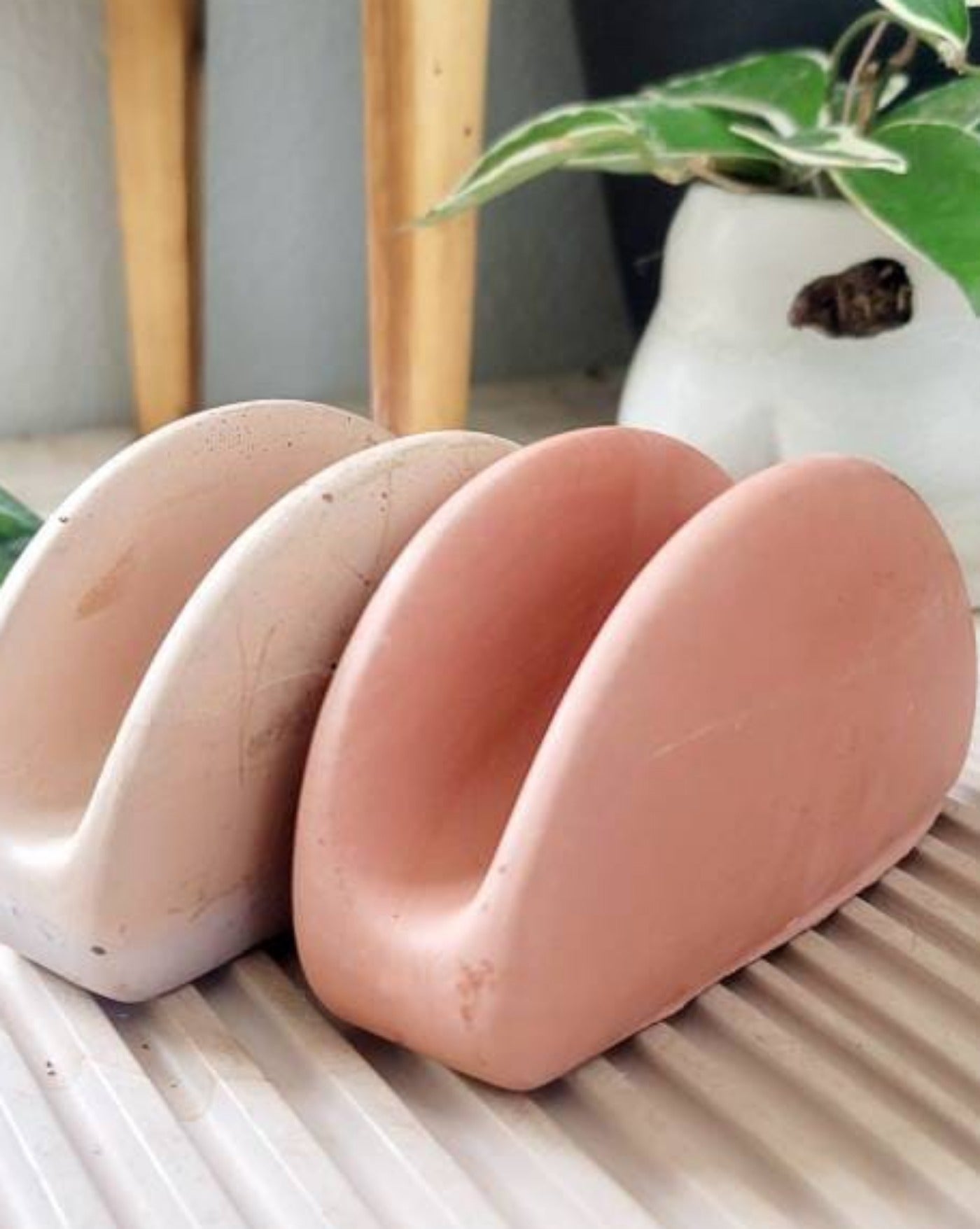 Introducing the perfect accessory for your dining table - our Taco Shaped Cement Napkin Holder! Made of durable cement, this modern napkin holder is both stylish and functional, ensuring your napkins stay in place during mealtime. Its unique taco shape is sure to impress your guests, while the sturdy construction guarantees it will last meal after meal. Perfect for any occasion, from casual dinners to formal events. Upgrade your table setting with this must-have napkin holder!